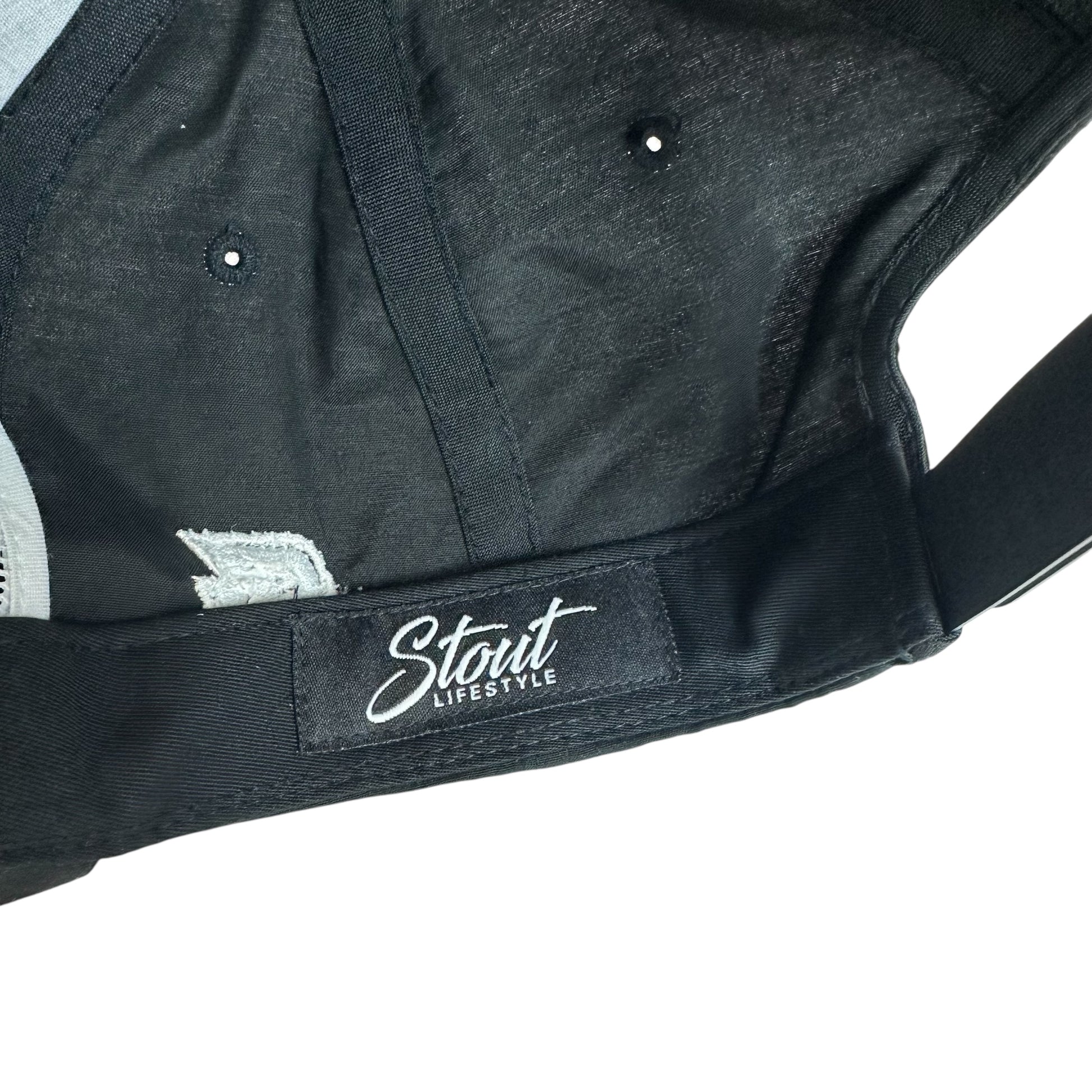 One side fits most. Adjustable snapback closure.